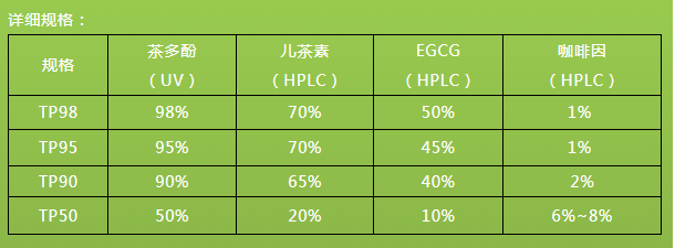 【産品規格】:茶多酚20%-道兒98%,兒茶素30-90%,EGCG15-98%